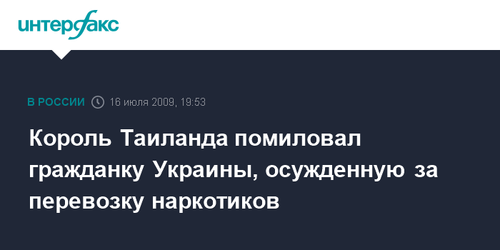 Король Таиланда помиловал гражданку Украины, осужденную за перевозку наркотиков