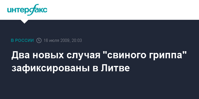 Вильнюс. 16 июля. INTERFAX.RU - В лаборатории Литовского центра анти-СПИД подтверждены еще два случая заболевания вирусом гриппа A/H1N1, сообщило в четверг министерство здравоохранения.