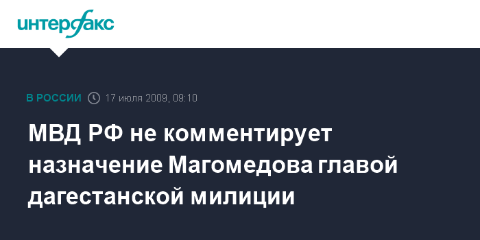 Москва. 16 июля. INTERFAX.RU - В пресс-службе МВД России пока не комментируют публикации в СМИ о назначении Али Магомедова главой МВД Дагестана.
