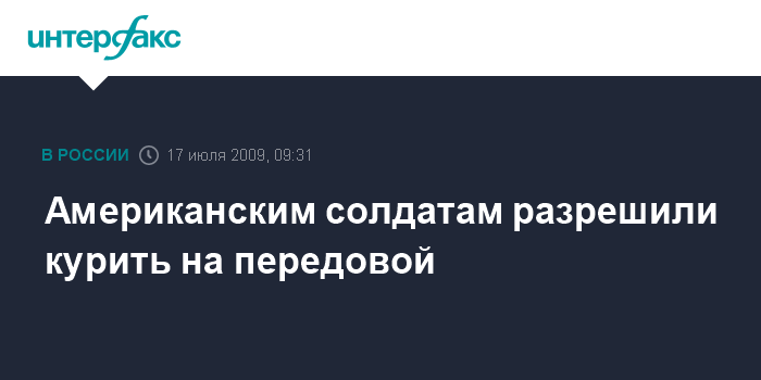 Москва. 16 июля. INTERFAX.RU - Министерство обороны США разрешило курить американским военнослужащим, находящимся в зонах боевых действий.