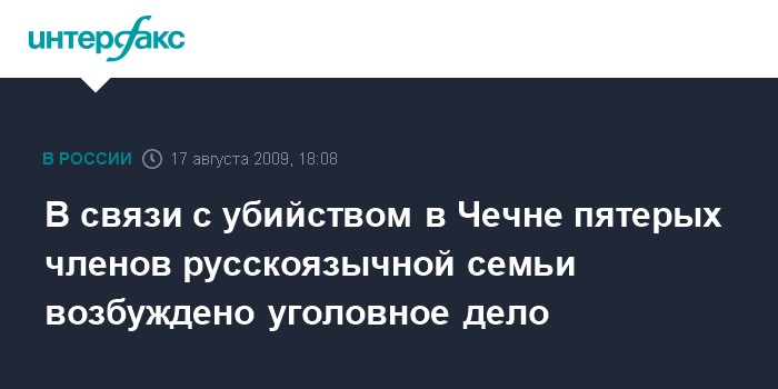 В связи с убийством в Чечне пятерых членов русскоязычной семьи возбуждено уголовное дело