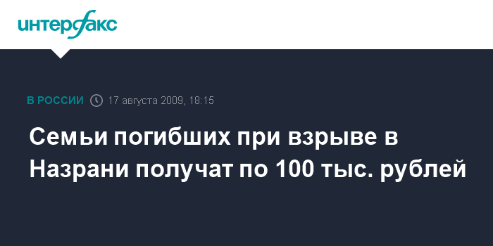По ее словам, семьям погибших сотрудников и местных жителей будет оказана помощь в размере 100 тыс. рублей каждой семье. Кроме того, по 50 тыс. рублей получат все пострадавшие в результате взрыва.