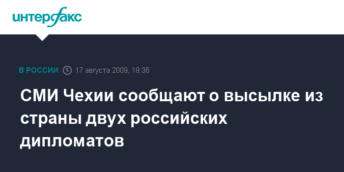 Прага. 17 августа. INTERFAX.RU - Заместитель военного атташе посольства России в Чехии выслан из страны, еще один российский дипломат получил рекомендацию не возвращаться из отпуска, цитирует в понедельник информационный чешский вебсайт "Чешские новости" неназванный дипломатический источник.