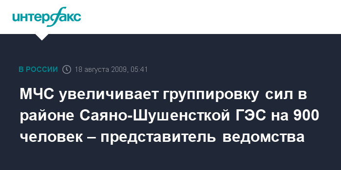 Саяногорск. 18 август. ИНТЕРФАКС - МЧС России усиливает группировку сил и средств для ликвидации последствий аварии на Саяно-Шушенской ГЭС