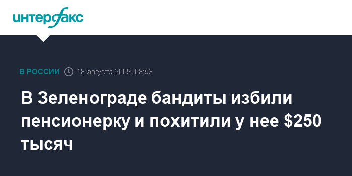 В Зеленограде бандиты избили пенсионерку и похитили у нее $250 тысяч
