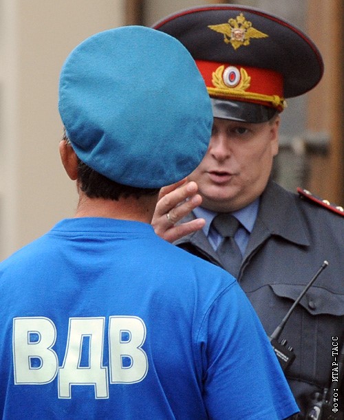 Десантник на одной из улиц столицы во время празднования Дня Воздушно-десантных войск РФ в День Ильи Пророка