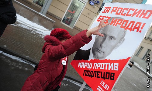 В Москве проходит акциия под названием "Марш против подлецов 13 января". Оппозиция протестует против "антимагнитского закона", который, в частности, запретил американцам усыновлять российских детей-сирот.
