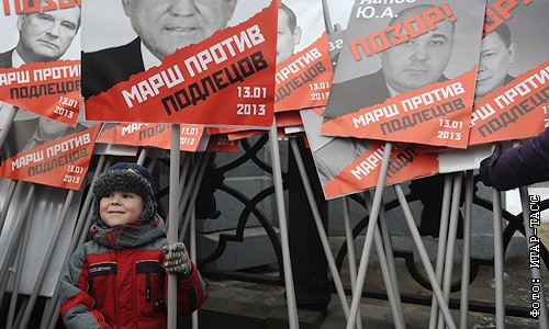 Согласованное с властями оппозиционное шествие с заявленной численностью до 20 тыс. человек проходит в Москве 13 января