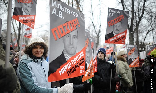 Согласованное с властями оппозиционное шествие с заявленной численностью до 20 тыс. человек проходит в Москве 13 января