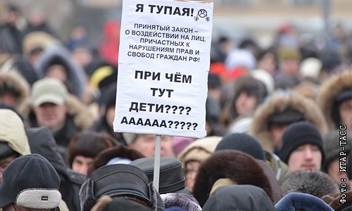Участники митинга против запрета на усыновление российских сирот гражданами США.