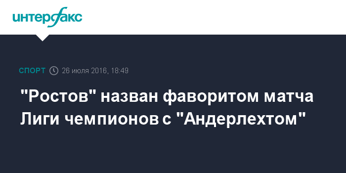 Москва. 26 июля. INTERFAX.RU - Футбольный клуб "Ростов" (Ростов-на-Дону) является фаворитом первого матча третьего квалификационного раунде Лиги чемпионов УЕФА против бельгийского "Андерлехта", свидетельствуют котировки британской букмекерской конторы William Hill во вторник, в день матча.