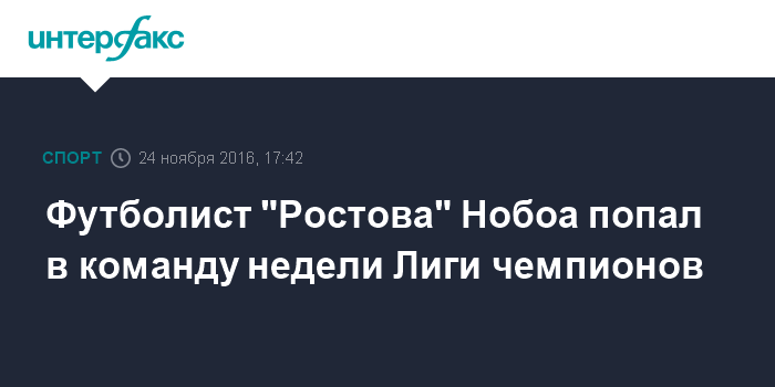Москва. 24 ноября. INTERFAX.RU - Полузащитник футбольного клуба "Ростов" (Ростов-на-Дону) Кристиан Нобоа получил место в символической команде недели Лиги чемпионов, сообщается в твиттере Союза европейских футбольных ассоциаций (УЕФА).