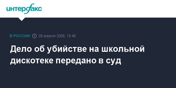 Москва. 29 апреля. INTERFAX.RU - Прокуратура Советского района Брянска передала в райсуд дело об убийстве студента воронежского вуза на дискотеке в школе N56.