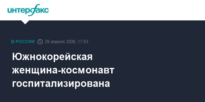 Южнокорейская женщина-космонавт госпитализирована