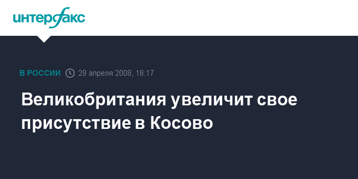 Лондон. 29 апреля. INTERFAX.RU - Великобритания по просьбе НАТО направит 600 военнослужащих в Косово, сообщил министр обороны страны Дэс Браун.