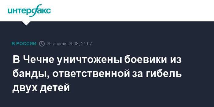 Грозный. 29 апреля. ИНТЕРФАКС - В Чечне ликвидированы двое участников незаконных вооруженных формирований, совершивших в составе бандгруппы обстрел автомашин в населенном пункте Ца-Ведено, в результате чего погибли две девочки.