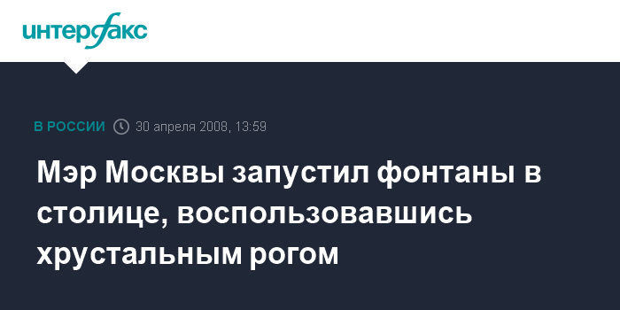 Сигналом к открытию всех московских фонтанов стал момент, когда мэр вылил из хрустального рога воду в чашу фонтана в Царицине.