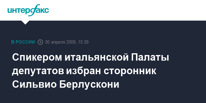 Спикером итальянской Палаты депутатов избран сторонник Сильвио Берлускони