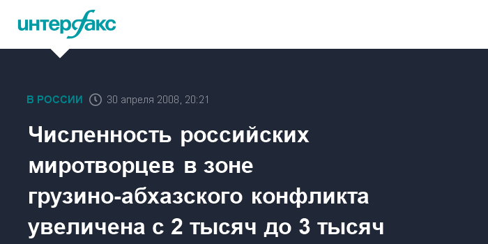 Численность российских миротворцев в зоне грузино-абхазского конфликта увеличена с 2 тысяч до 3 тысяч человек