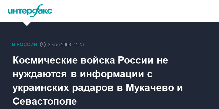 Как сообщалось, 12 февраля 2008 года президент России подписал закон "О денонсации соглашения между правительством РФ и правительством Украины о средствах систем предупреждения о ракетном нападении и контроля космического пространства".