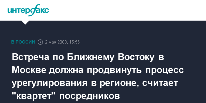 Встреча по Ближнему Востоку в Москве должна продвинуть процесс урегулирования в регионе, считает "квартет" посредников