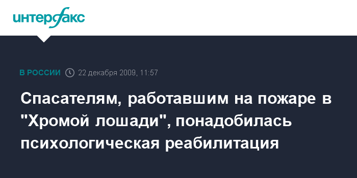 Москва. 22 декабря. INTERFAX.RU – Некоторые спасатели Пермской городской службы спасения, работавшие на пожаре в клубе "Хромая лошадь" 5 декабря, до сих пор проходят психологическую реабилитацию, сообщил директор службы Алексей Тихомиров.