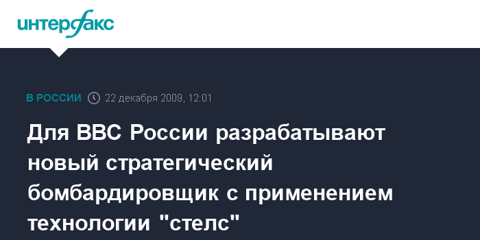 Москва. 22 декабря. INTERFAX.RU – В России разрабатывается новый стратегический бомбардировщиков с применением технологий "стэлс", сообщил журналистам командующий Дальней (стратегической) авиации (ДА) генерал-майор Анатолий Жихарев.