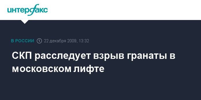 Москва. 22 декабря. INTERFAX.RU - Следственный комитет при прокуратуре РФ возбудил уголовное дело по факту взрыва гранаты, произошедшего 21 декабря в лифте жилого дома на юго-западе Москвы. "По данному факту следственными органами СКП по городу Москве возбуждено уголовное дело по признакам преступлений, предусмотренных ч. 3 ст. 30, ч. 1 ст. 105 (покушение на убийство) и ч. 1 ст. 222 (незаконный оборот оружия) УК РФ", - говорится в сообщении СКП РФ, размещенном во вторник на сайте ведомства.