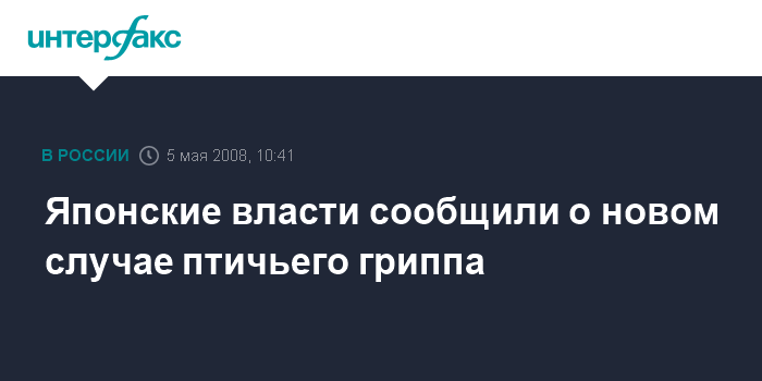 Токио. 5 мая. INTERFAX.RU - Власти Японии подтвердили, что лебедь, обнаруженный в конце апреля мертвым на о. Хоккайдо, был заражен вирусом птичьего гриппа H5N1, который является опасным и для человека.
