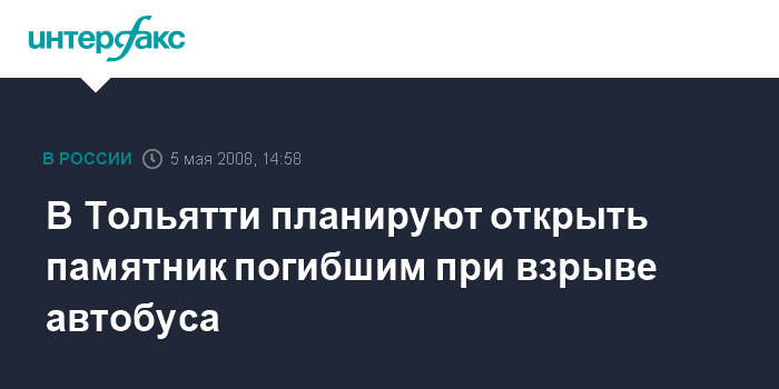 Москва. 5 мая. INTERFAX.RU - Новый мэр Тольятти Анатолий Пушков считает необходимым увековечить память о погибших и пострадавших в результате взрыва в городском автобусе в октябре 2007 года.
