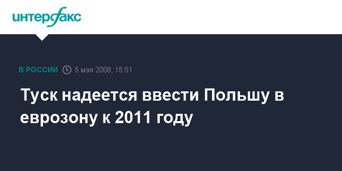 Варшава. 5 мая. INTERFAX.RU - Польский премьер Дональд Туск считает, что к 2011г. его страна будет готова войти в еврозону.