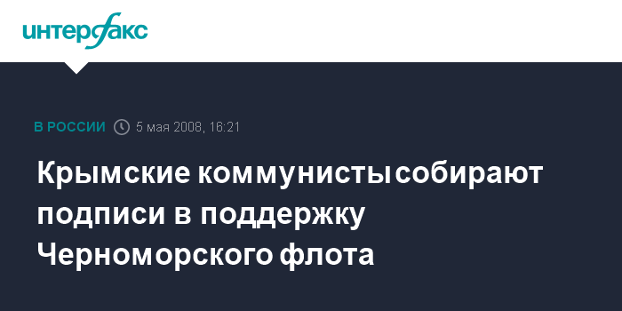 Киев. 5 мая. INTERFAX.RU - В Крыму начался "Народный плебисцит" о предоставлении права бессрочного базирования кораблям Черноморского флота России в Севастополе. Подписи в поддержку этого проекта собирает Компартия Украины.