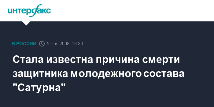 Москва. 5 мая. INTERFAX.RU – Сегодня стала известна причина смерти 19-летнего защитника молодежного состава "Сатурна" Кирилла Спасского: ею явился острый менингит гипертоксичной формы. Похороны Кирилла пройдут в четверг, 8 мая, в его родном городе Ярославле, сообщает официальный сайт клуба
