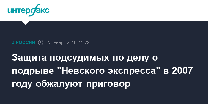 Защита подсудимых по делу о подрыве "Невского экспресса" в 2007 году обжалуют приговор