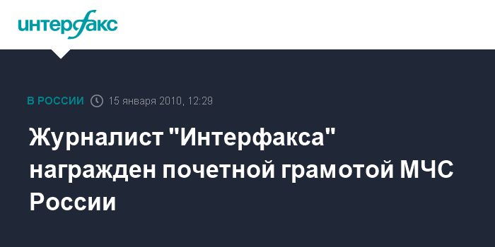 Журналист "Интерфакса" награжден почетной грамотой МЧС России