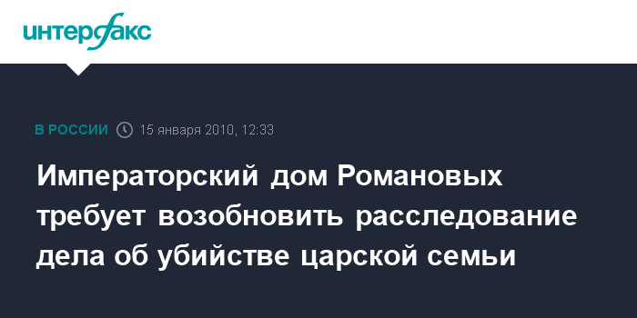 Императорский дом Романовых требует возобновить расследование дела об убийстве царской семьи