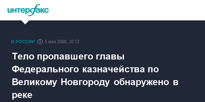 Тело пропавшего главы Федерального казначейства по Великому Hовгороду обнаружено в реке