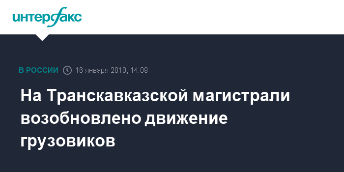 Владикавказ. 16 января. INTERFAX.RU - Транскавказская магистраль открыта для движения большегрузного автотранспорта в обоих направлениях. "Дорожные службы провели расчистку высокогорной автомагистрали от гололеда и тем самым обеспечили безопасное движение большегрузного автотранспорта. В связи с этим на Транскаме возобновлено движение грузовых автомашин", - сообщили агентству "Интерфакс-Юг" в пресс-службе Главного управления МЧС РФ по Северной Осетии в субботу. По словам собеседника агентства, в эти часы Транскавказская магистраль функционирует в обычном режиме, как в сторону Южной Осетии, так и из Южной Осетии в сторону Российской Федерации.
