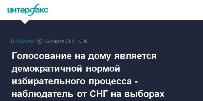 Киев. 16 января. INTERFAX.RU - Голосование на дому является демократичной нормой избирательного процесса, считает представитель миссии Межпарламентской ассамблеи СНГ, председатель комитета Государственной Думы России по делам СНГ и связям с соотечественниками Алексей Островский.