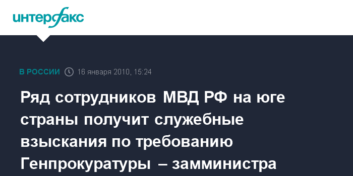 Ряд сотрудников МВД РФ на юге страны получит служебные взыскания по требованию Генпрокуратуры – замминистра