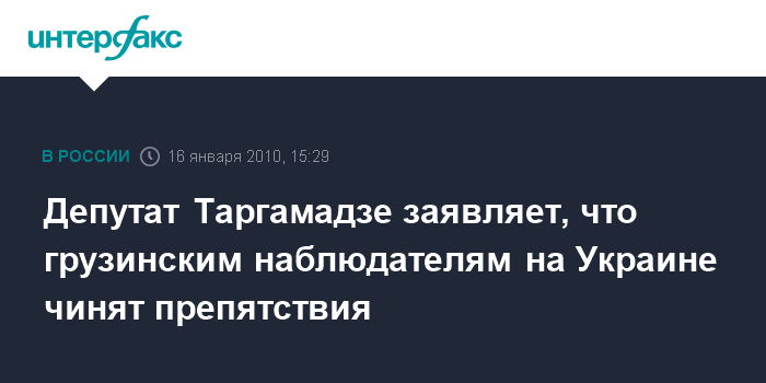 Тбилиси. 16 января. INTERFAX.RU - Председатель комитета парламента Грузии по обороне и безопасности Гиви Таргамадзе, возглавляющий все еще незарегистрированных на Украине грузинских наблюдателей, которые хотят следить за президентскими выборами в этой стране, заявил, что ЦИК Украины и, конкретно, в Донецкой области создаются искусственные преграды для их работы.