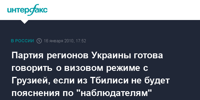 Партия регионов Украины готова говорить о визовом режиме с Грузией, если из Тбилиси не будет пояснения по "наблюдателям"