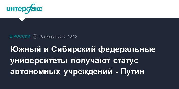 Южный и Сибирский федеральные университеты получают статус автономных учреждений - Путин
