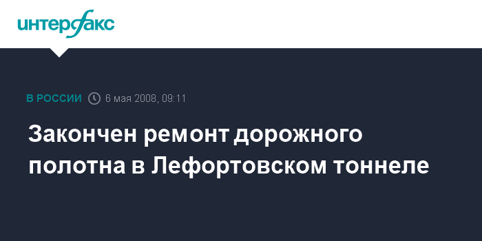 Москва. 6 мая. INTERFAX.RU - Ограничения движения, связанные с ремонтом дорожного покрытия в Лефортовском тоннеле, сняты утром во вторник, сообщили "Интерфаксу" в управлении ГИБДД столицы. "Ремонт асфальтобетонного покрытия завершен в полном объеме", - сказал собеседник агентства.