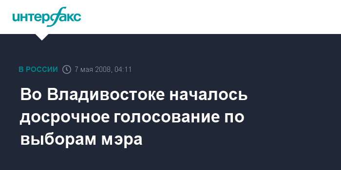 Владивосток. 7 мая. ИНТЕРФАКС-ДАЛЬНИЙ ВОСТОК - Во Владивостоке продолжается подготовка к досрочному голосованию по досрочным выборам мэра города, которые пройдут 18 мая.