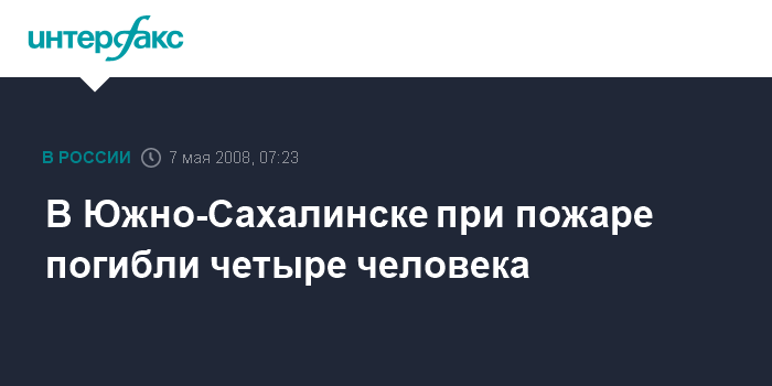 Южно-Сахалинск. 7 мая. ИНТЕРФАКС - ДАЛЬНИЙ ВОСТОК - Четыре человека (трое мужчин и одна женщина) сгорели в среду утром в Южно-Сахалинске при пожаре в вагончике, расположенном недалеко от оптовой торговой базы.