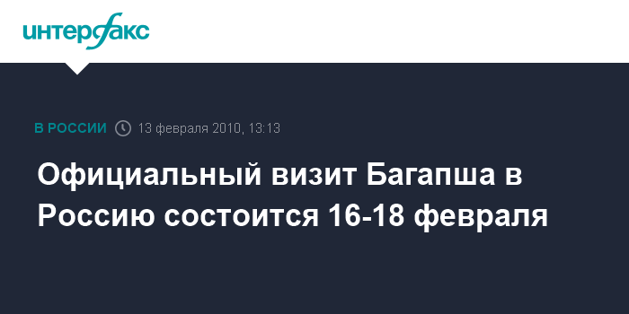 В сообщении отмечается, что визит состоится по приглашению президента РФ Дмитрий Медведева. "17 февраля пройдут переговоры Медведева с Багапшем с участием членов официальных делегаций", - говорится в сообщении.