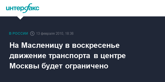 На Масленицу в воскресенье движение транспорта в центре Москвы будет ограничено