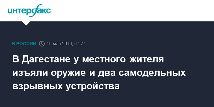 Ростов-на-Дону. 16 мая. ИНТЕРФАКС-ЮГ-Самодельное взрывное устройство, оружие и боеприпасы обнаружены во дворе одного из жилых домов в поселке Шамхал кировского района Дагестана, сообщили агентству "Интерфакс - Юг" в местном РУВД.
