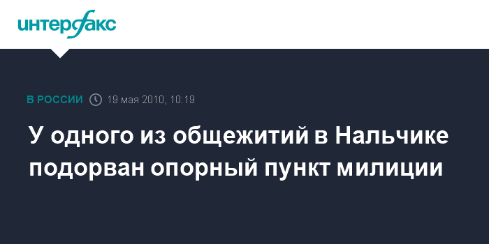 Москва. 19 мая. INTERFAX.RU - В столице Кабардино-Балкарии Нальчике утром в среду совершен террористический акт, сведений о пострадавших пока нет, сообщил агентству "Интерфакс-Юг" источник в правоохранительных органах КБР